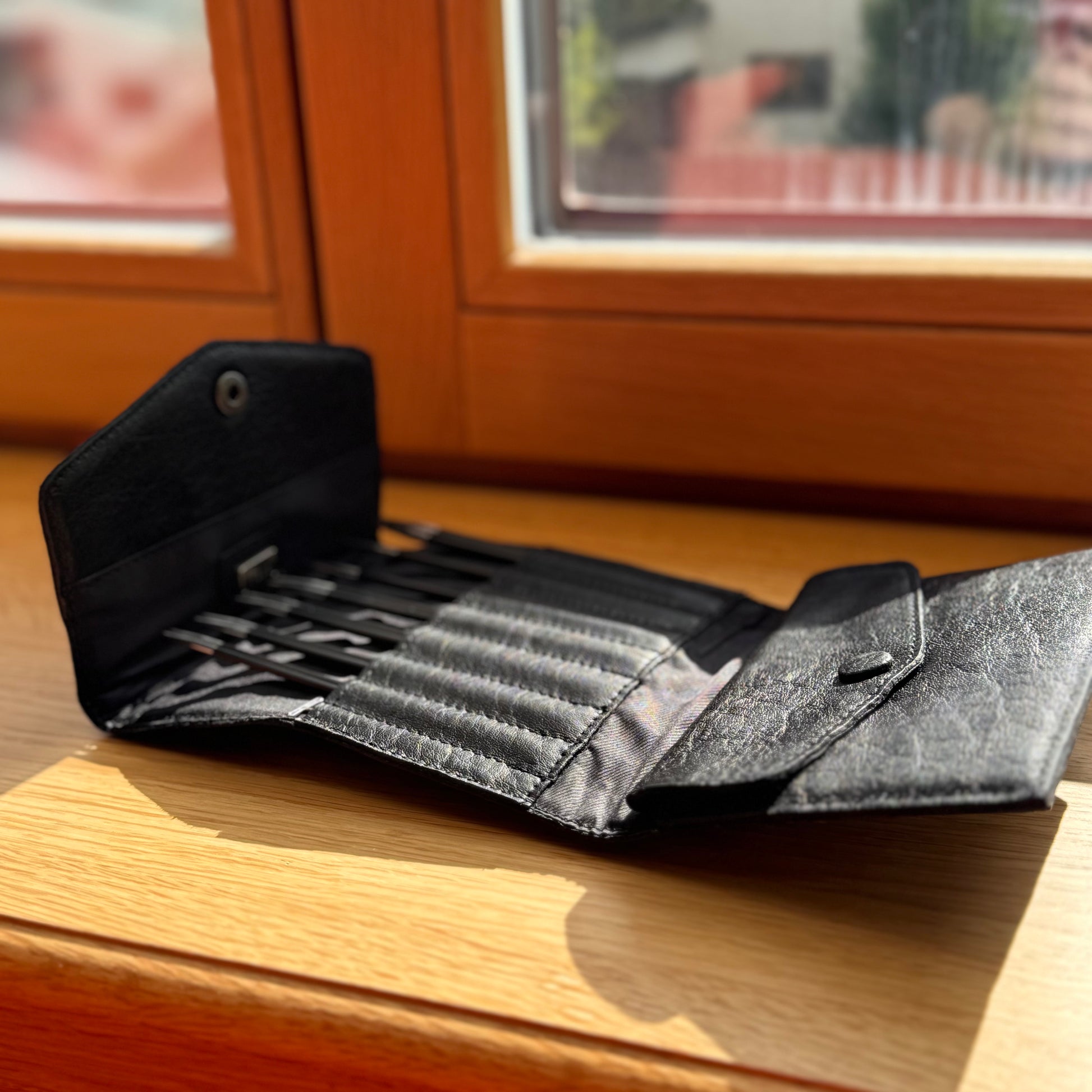Civ is a beautiful, foldable leather needle case from muud. The Civ case provides 8 compartments, perfect for 8 sets of knitting needles in different sizes. The Civ case ensures a convenient and protective way to storage your knitting needles and interchangeable circulars needles.